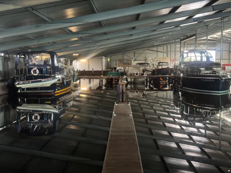 Bootshallenplatz an schönstem Erholungsgebiet von Holland (Friesland) beim Nationalpark Weerribben, in zentraler Lage zwischen Friesland und Overijssel, am Rande des Weerribben und der Kalenbergergracht, finden Sie diesen großartigen überdachten Jachthafen mit nicht weniger als 63 Liegeplätzen, ideal zum Festmachen Ihres Bootes, geschützt vor Wind und Wetter. Alle notwendigen Arbeiten an Ihrem Boot können von der benachbarten Werft Vri-Jon DSA Yachts durchgeführt werden, die auch über einen 20-Tonnen-Kran verfügt.