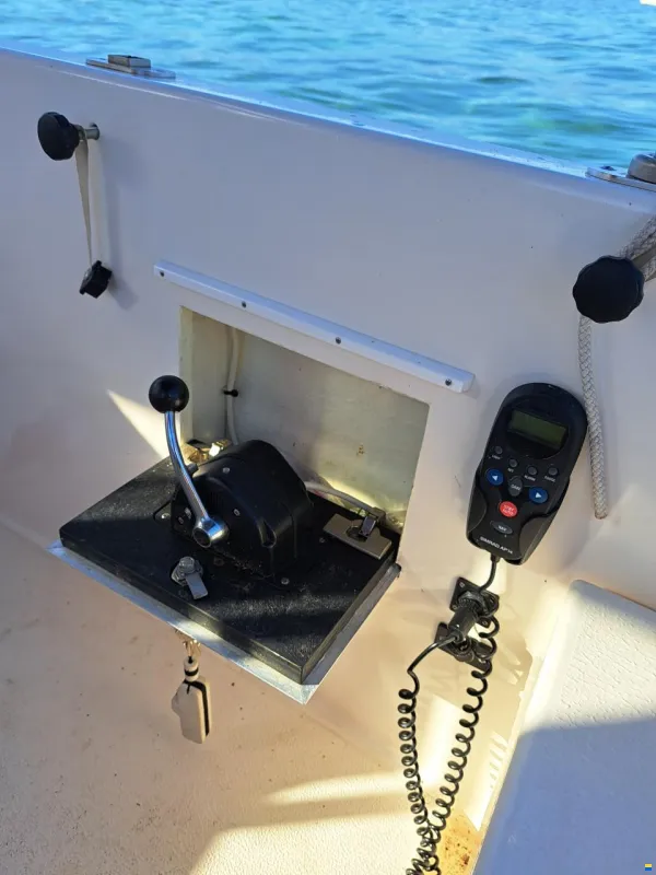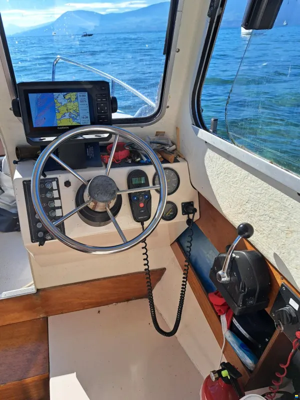 Verkauft inklusive Liegeplatz in Chevroux, kompletter Schleppangelausrüstung, Autopilot mit doppelter elektrischer Steuerung (Kabine und Heck), Badeleiter, abnehmbarem Tisch und diversem Zubehör, neuen maßgefertigten Abdeckplanen vorne und hinten, geprüftem Transport- und Slip-Anhänger, verkauft inklusive nautischem Zubehör