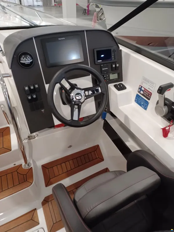 Unsinkbare Konstruktion, Lenzsystem, Edelstahl-Haltegriffe Klampen, Ösen, Griffe und Badeleiter, Navigationslichter LED, Deck Licht LED, Elektro- Hydraulische Steuerung Lenkrad verstellbar, Massive Glasscheiben, Einbautank (220 l), Kraftstofffilter, Scheibenwischer Fahrerseite, Füllkissen für Kabine, manuelle und elektrische Bilgenpumpe, verstellbare Komfortsitze, Mückengitter für Bullaugen, Tisch inkl. Sonnenliegekissen, Bimini CH und Sonnenverdeck, Cockpitblache, Teak Set komplett, Teak Behandelt, Spülbecken mit 10L Abwassertank, Zwei- Batteriesystem inkl. Zweite Batterie 100A, Radio (DAB+, USB, MP3, Bluetooth) + 4 Lautsprecher, Hydraulische Trimmklappen mit LED Anzeige, Wasserskistange, Kühlschublade Waeco CD-30, Chemical Toilette, Sonnenliege Vordeck zwei Teilig (CH), Kartenplotter Raymarin Axiom 9 mit Seekarte CH, Marina Rütenen Swiss Edition, Transport und Verzollung, Motormontage und MFK, Motor Yamaha F250DET (250 PS) mit El. Schaltung, Notmaterial, Anker mit Tau und Übergabe.