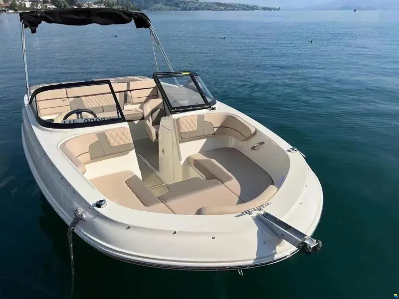 Dieses neuwertige 2024er Bayliner VR4 Bowrider steht für pure Lebensfreude auf dem Wasser. Mit 5.66 Metern Länge und 2.28 Metern Breite bietet er erstaunlich viel Platz und eine durchdachte Raumaufteilung, die Komfort und Funktion perfekt vereint. Die elegante Farbkombination in Schwarz-Weiss, die edlen Polster in Sand- und Beigetönen sowie das markante Bayliner-Design verleihen dem Boot eine moderne, sportlich-zeitlose Ausstrahlung.