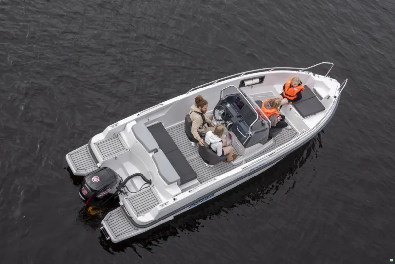 Damit dieses Gefühl nicht bei der Idee bleibt, sondern im Alltag überzeugt, bringt das Boot mehrere praktische Details mit: hydraulische Lenkung, Offshore-Sitze, selbstlenzendes Cockpit, Badeleiter sowie USB-Ladeanschlüsse. Dazu kommen Stauraum und ein 12V-Anschluss für eine Kühlbox, Navigationslichter, Edelstahl-Beschläge sowie die Möglichkeit für Kartenplotter (max. 36 cm x 25 cm, 2 Stück). Ergänzt wird das Ganze durch SmartCraft Multifunktionsdisplay und einen Geschwindigkeitsregler fürs Trolling – Details, die aus einem guten Tag auf dem Wasser einen richtig entspannten machen.