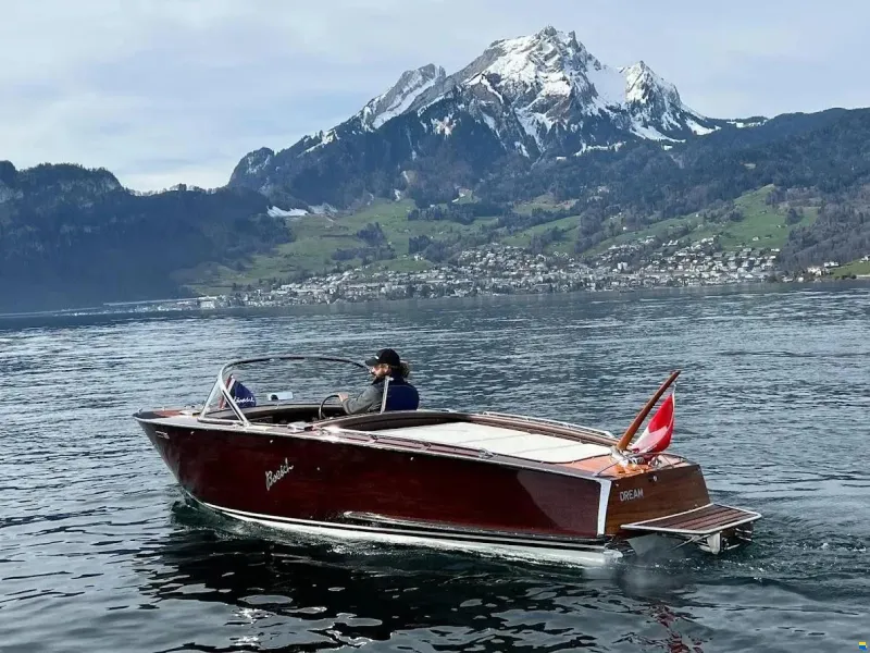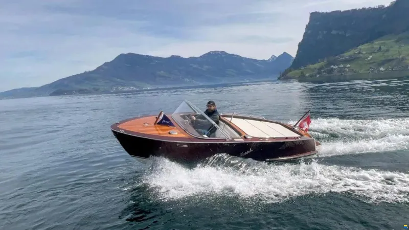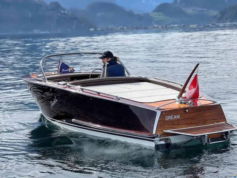 Die hochwertige Mahagoniverkleidung verleiht dem Boot eine unverwechselbare Ausstrahlung. Dank des frisch lackierten Rumpfes mit tiefem Hochglanz (2021) und dem liebevoll gepflegten Interieur wirkt dieses Boot wie aus dem Showroom. Die harmonische Linienführung, die verchromten Details und die klassische Form des Bugs lassen Erinnerungen an die grosse Ära eleganter Runabouts wachwerden.