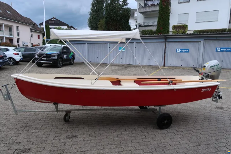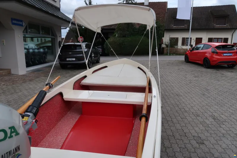 Sehr schönes Boot mit Motor. Ist von Hand Trailerbar mit Slipwagen. Inkl. Persenning, Buegliegematten, Sonnendach, Slipwagen, Ruder und diverse Notausrüsung. Motor ab Service und Abgaswartung