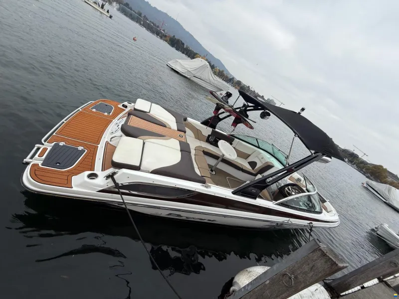 Im Kundenauftrag verkaufen wir dieses Service gepflegte Sportboot. Dieses sehr starke und schnelle sportboot beschleunigt mit seinem V8 auch unter Zuglast schnell auf die gewünschte Geschwindigkeit. Ideal zum Wasserski/ Wake Surfen oder einfach sportliches fahren. Dank seinem Idealen Gewichtsverhältniss liegt es sicher im Wasser. Mit seinem tollen Sound System geniesst mann auch unter Fahrt seine Musik. Es ist betriebsbereit und mit komplettem Notmaterial ausgestattet.