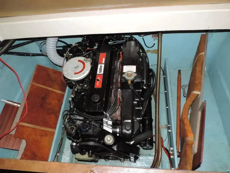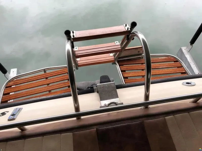 Unter der grosszügig gepolsterten Heckliege wartet ein frisch gewarteter Mercruiser Innenborder (Modell 485, rund 165 PS) auf seinen Einsatz. In Verbindung mit dem Z-Antrieb hebt der kraftvolle Vierzylinder das lediglich 1 100 kg leichte Boot mühelos in die Gleitfahrt und sorgt für souveränen Schub bei Wassersporteinlagen oder entspannten Cruisings über den See.
