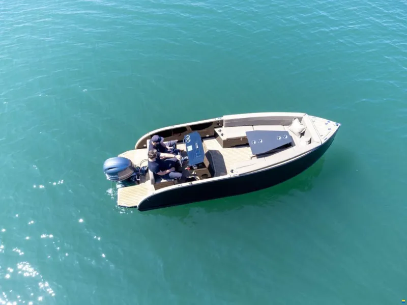 Stylisches Motorboot mit einer schmalen Breite, für kleine Liegeplätze. Das Boot bietet reichlich Platz im Cockpit. Zum Fahren ist das Boot wie auf Schienen. Das Moderne Designe mit dem Teak-Look aus Flexi Teak sticht einem sofort ins Auge und gibt ein stimmiges Gesamtbild.. Ein perfektes Boot um ein paar Stunden auf dem Wasser zu verbringen. Für weitere Auskünfte stehen wir Ihnen gerne zur Verfügung.