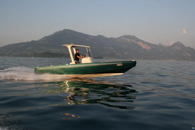 Tender08 by designboats.ch: Gewinner des International Red Dot Design Awards. Vollständig ausgestattet. T-Top mit Sonnensegel hinten, Mittschiff-Sitzgruppe mit Tisch, sehr gepflegtes Teakdeck, Sonderlackierung aussen velvet green metallic in top Zustand. Alle Details und Kaufberatung auf Anfrage.