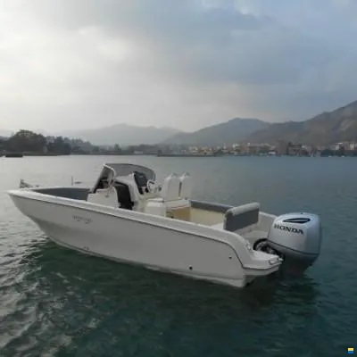 Equipement complet cabine, Sellerie “Terracotta”, Bande soleil arrière, convertible, Douchette de cockpit, Echelle de bain relevable escamotable, Rangements en cockpit, Rembourrage périmétral en cockpit, Davier ancre avec rabattant en inox, Coque couleur “Bianco Tropea”, Module leaning post avec repose pieds rabattable, Direction hydraulique.