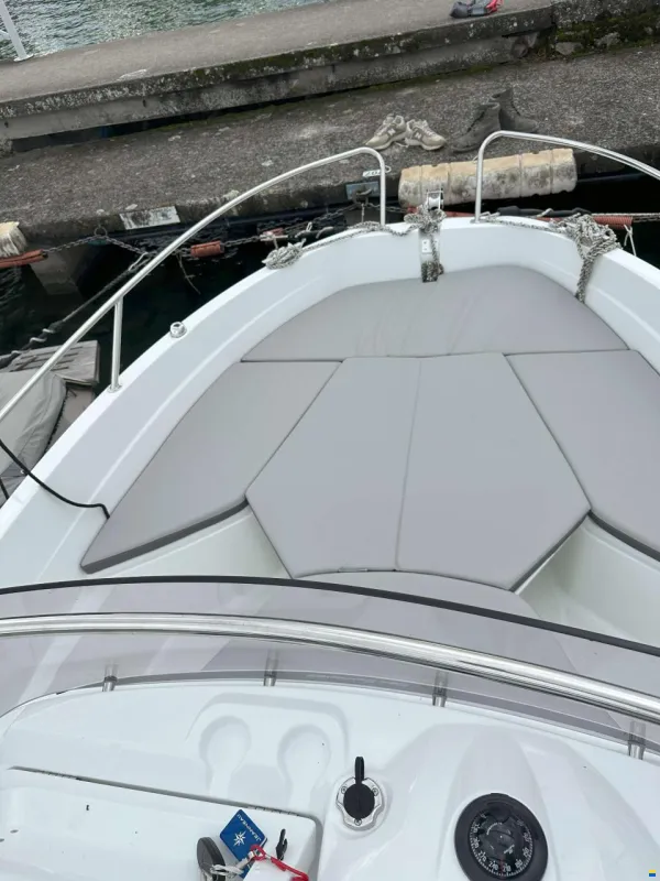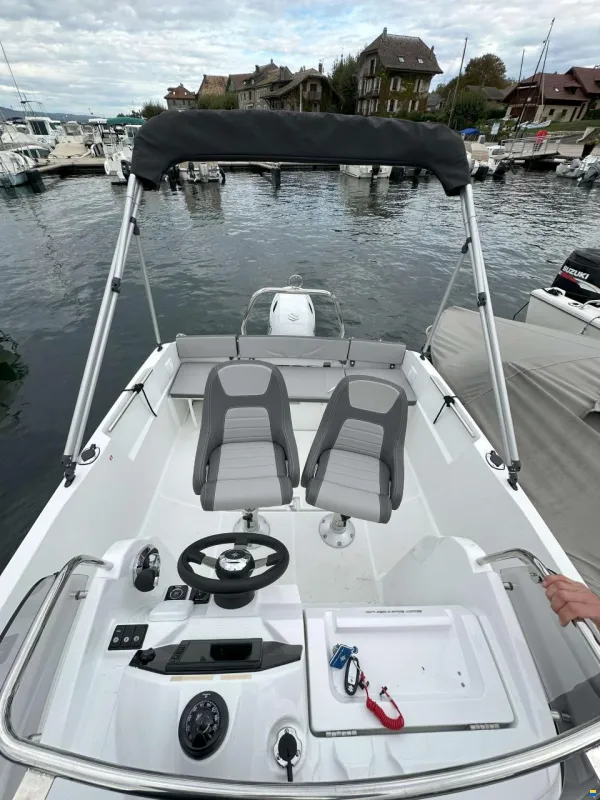 Motorisiert mit Suzuki 115 PS, mit nur 185 Stunden. Das Boot ist leicht zu handhaben, sparsam und angenehm. Es ist ideal, um den See in vollen Zügen zu genießen.
