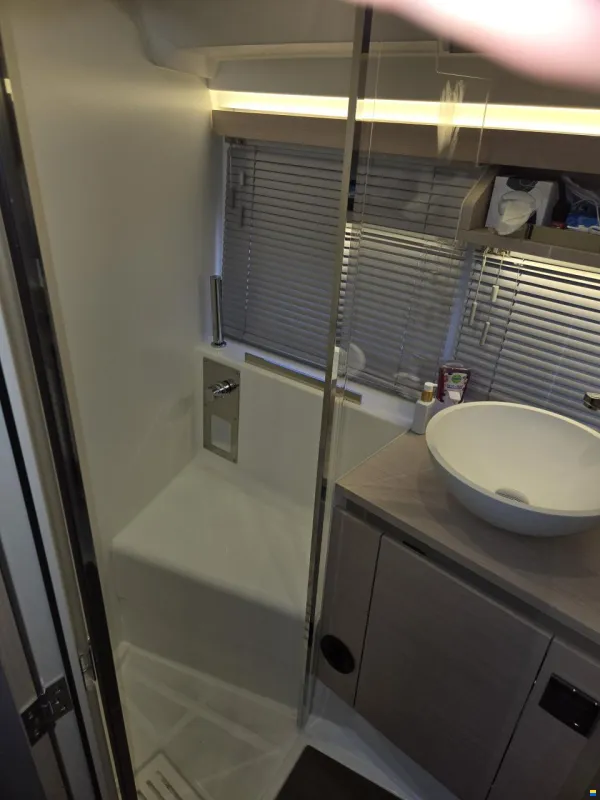 Super Ausstattung: Bugstrahler. Chromstahlanker mit elek. Ankerwinde, Autopilot mit Fernbedienung, Bugsprit mit Leiter, elektrisches Glasschiebedach, 2 Kühlschränke, Separate Klimaanlage für jede Kabine ,Ganzpersenning, Verdeck CH- Ausführung, Sonnendachverlängerung, verstellbares Steuerrad, Sonnenliege, Beschattung für Front-und Seitenscheiben. Unterwasser mit VC17. Helles Holz(Aufpreis),Aussenstauschrank, Inverter. Schiff kann mit Liegeplatz in Arbon übernommen werden. Schweizer Auslieferung. Schiff wird gereinigt und vollgetankt von der Werft übergeben. War immer im Winterlager.