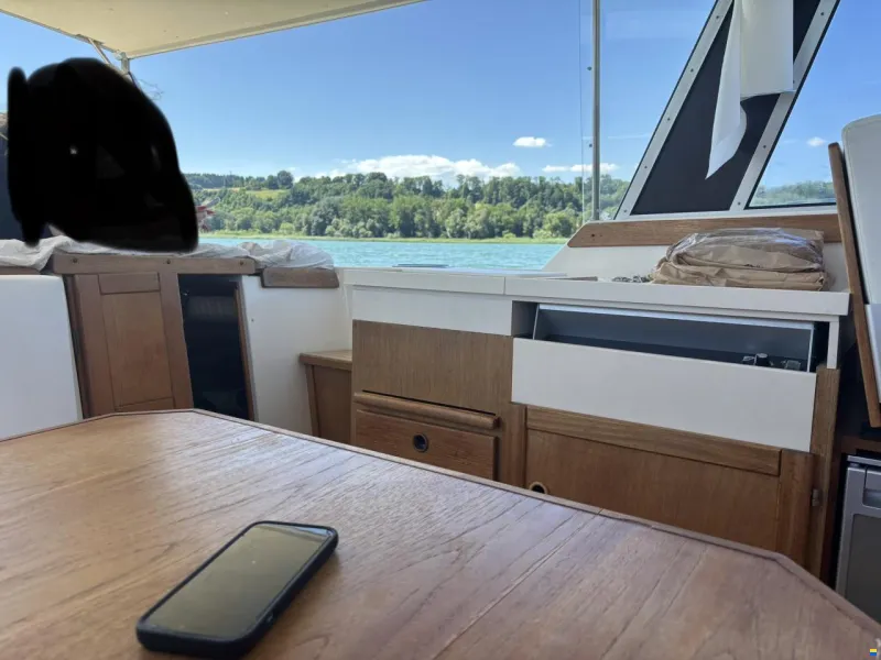 Achtern steht Ihnen eine Doppelkabine mit stau Raum zur Verfügung. Oberhalb der Koje haben sie zusätzlich eine Sonnenliege oder weitern Schlafraum. Der mittlere Bereich besteht aus Küche, Fahrerstand sowie Essecke. Im Bug des Bootes finden sie genügend Stauraum, Sitzecke oder Schlafmöglichkeit sowie die Nasszelle mit WC.