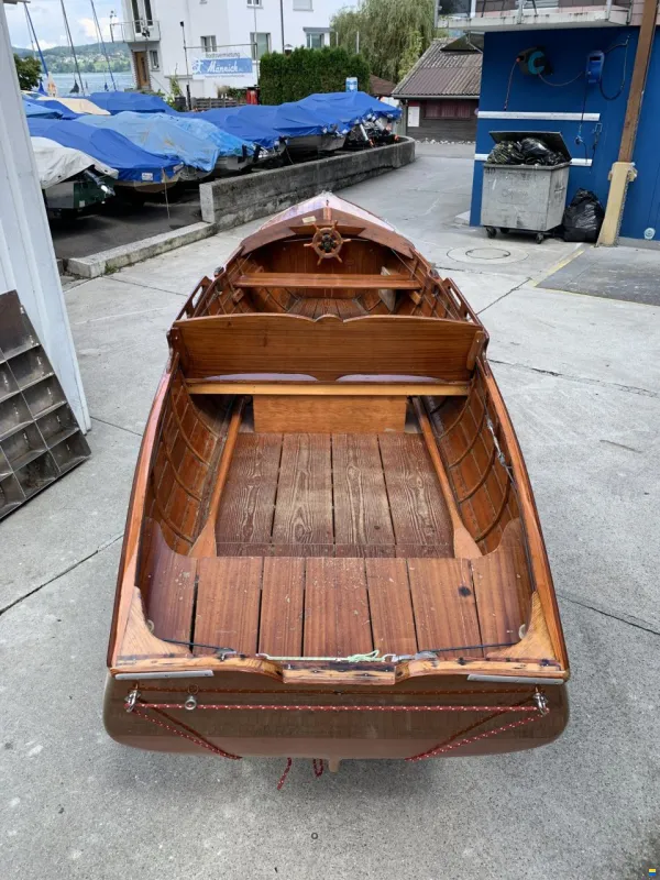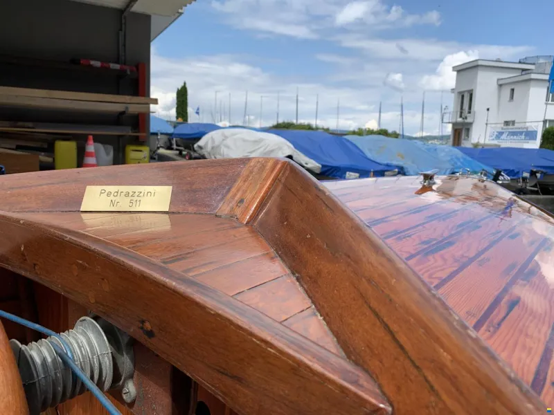 Gepflegtes Pedrazzini Nr. 511. Rumpf und Bugdeck 2021 restauriert, neu aufgeharzt und lackiert. Bilge und Unterwasser frisch gestrichen. Immer Trocken gelagert. Auf Anfrage kann gerne ein Elektro- oder Verbrennungsmotor zusätzlich offeriert werden. Das Boot kann auf Terminabsprache zu Werftöffnungszeiten besichtigt werden (Mo - Fr, 8-12 / 13-17Uhr). Kein Wasserplatz im Angebot.