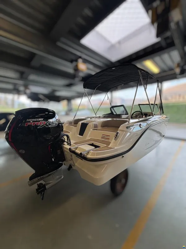 Rullo salpancora, scaletta da bagno, luci di navigazione, gavone per ancora e cime, plancette da bagno, rivestimento GatorStep, stereo Jensen con 2 altoparlanti, presa elettrica 12V, bimini, kit ormeggio e pacchetto consegna (montaggio motore, batteria, collaudo, foni e documento gas di scarico).