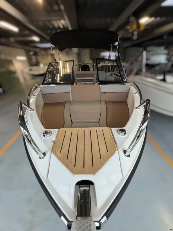SMART Pack (prendisole a prua, prendisole nel pozzetto, tavolino nel pozzetto in laminato, tendalino, porta del passaggio a prua), pacchetto Elettronica (stereo Fusion con 2 altoparlanti, GPS/eco Simrad Cruise 7" con trasduttore HDI), arco per sci nautico, rivestimento Flexiteek, kit stereo DAB con antenna, Active Trim, tergicristallo di dritta, kit ormeggio e pacchetto consegna (montaggio motore, batteria, collaudo, foni e certificato gas di scarico).