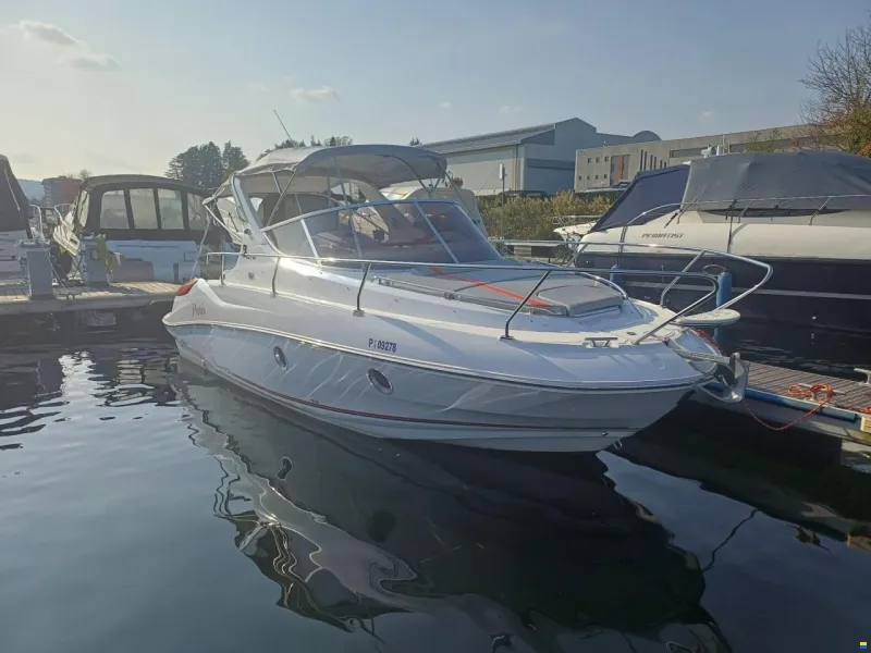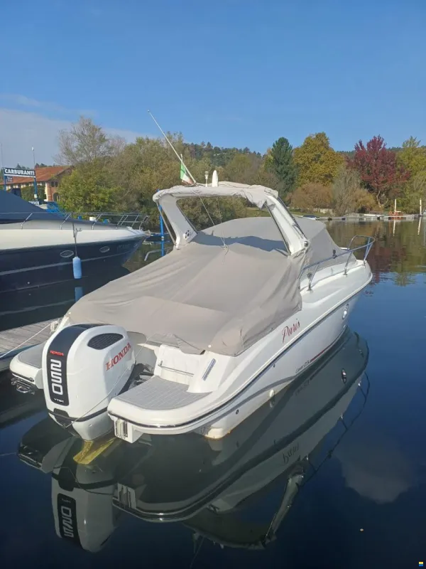 Elektrische Ankerwinde mit 30mt. Kette und 7.5Kg - Großes Liegekissen am Bug - Heck-Sonnendeck-Kissenverlängerung im Cockpit - Gaskocher - Kühlschrank - FUSION Stereoanlage mit wasserdichten Lautsprechern im Cockpit - Überrollbügel - Cockpitabdeckung und Bug-Sonnendeck-Abdeckung - Vorderes und hinteres Sonnendach mit Bögen - Verschluss des vorderen Verdecks - Zweite Cockpitabdeckung von der Windschutzscheibe bis zum Heck - Badeplattform aus synthetischem Teakholz und Cockpitverkleidung in Grau mit weißen Kommentaren - Boiler für Warmwassersystem - Kaikabel, Garmin 6" GPS-Kartenplotter mit ECO-Sonde - Separate Toilette mit elektrischem WC und Schwarzwassertank - Zwei zusätzliche Bullaugen - Mannloch in der Kabine - LED-Innen- und Außenbeleuchtung - Duales Batteriesystem - Antifouling - Motorwartung durch das HONDA Service Center im Rahmen der Garantie (das Boot wird mit neuem Antifouling und Wartung ausgeliefert) - USB-Steckdose zum Aufladen von Telefonen - Spülbecken im Cockpit
