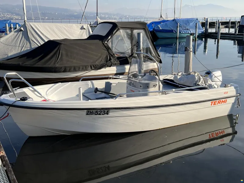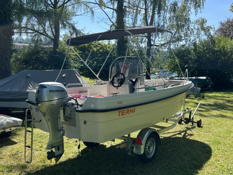 Terhi 450 CC mit Anhänger, Persenning, Tisch & Liegefläche – sofort startklar und prüfungsfrei auf den See