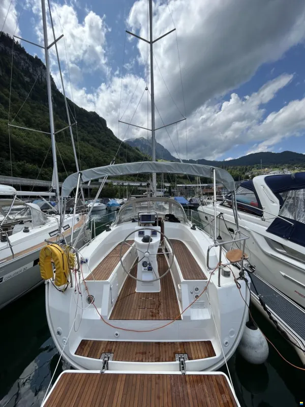 Perfekte Familienyacht, grosse Badeplattform, einhandtauglich, vollständig ausgerüstet und jährlich werftgepflegt, neues Unterwasser, elektrische Ankerwinsch, Code0 mit 51 m2, Cockpit-Tisch, Garmin-Instrumente mit Autopilot, komplettes Zubehör (Festmacher, Fender, HR-Reiniger, usw.)