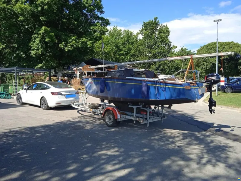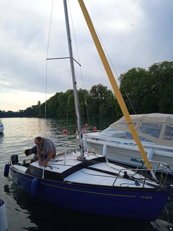Das Boot wird mit Trailer und allem, was Sie zum Segeln brauchen, verkauft: Motor, Großsegel, Genua, Spinnaker, Bojen, Planen, Schwimmwesten etc. Es ist segelfertig.