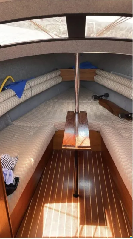 Die Yacht hat 4 Schlafplätze, eine Toilette mit chem. Klo, eine Galley mit kleinem Gaskocher und Waschbecken.