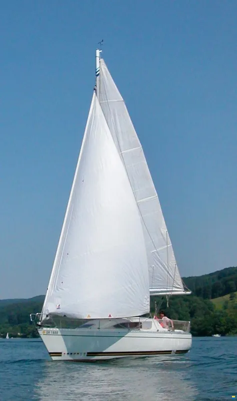 Segel: Rollgenua 20m2 North Sails 3 di ( 2021) Gross 14 m ( North Sails 3 di( 2018) Furlex S100 (2021 neu)Grossbaum Persenning 3 Jahre alt. Weber- Hafenwagen inkl. Kein Strassentrailer !