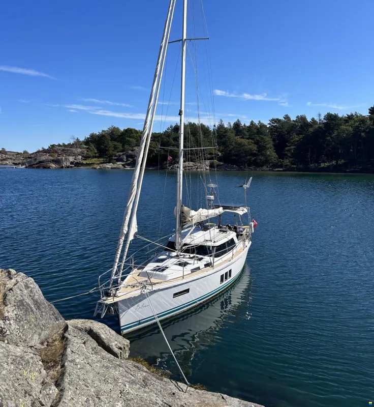 This boat has sailed over 10,000 nautical miles—much of it with just my daughter and me. So it’s a very safe, easy-to-handle boat, set up for very convenient travelling. Even though we often had excellent, fast crossings, our focus is on arriving safely and comfortably. Sitting inside the deck salon while on watch—doing some work or reading, and cooking a good meal—is something we strongly prefer over standing out in the cold and wet.