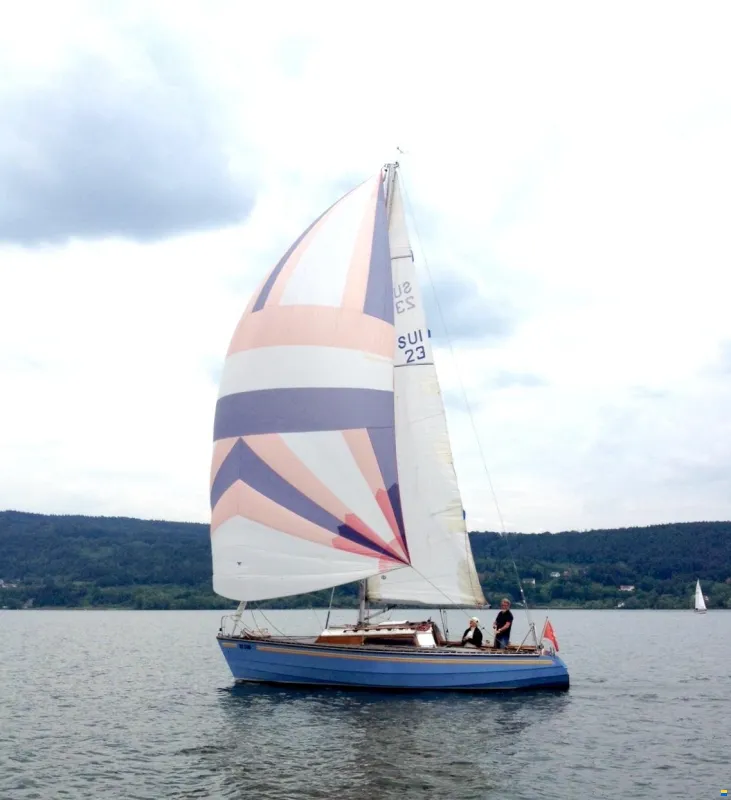 Das Waarschip 740 hat bekannt gute Segeleigenschaften, ist handlich, leicht manövrierbar und einhandtauglich. Es wurde für den Selbstausbau konzipiert und 1982 gebaut. Der Rumpf aus Bruynzeel-Marinesperrholz ist innen und aussen mit WEST-System Epoxy konserviert und dadurch pflegeleicht wie ein Kunststoffschiff. Nach einem 4-jährigen Mittelmeertörn von Frankreich via Türkei nach Venedig erhielt das Boot für den Bodensee einen Elektro-Saildrive, ein Binnenrigg und eine Heckplattform. Das Boot ist segelfertig - Gross und Genua sind neu -, braucht aber neue Polster und dem Alter entsprechend etwas Pflege. Mit 80 muss ich das Boot verkaufen. Der Käufer erhält mit etwas Eigenleistung günstig ein ganz besonderes Boot, das sich bewährt hat und ausgezeichnet segelt.